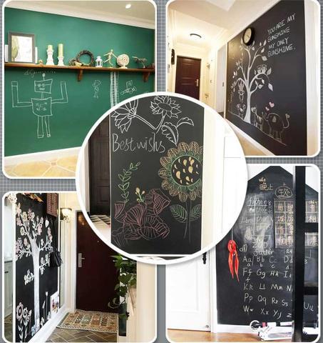 Este papel de contato para quadro negro é autoadesivo na maioria das superfícies lisas, planas e limpas, como parede rebocada, paredes pintadas, janelas, espelhos, bancadas e portas de madeira, etc.