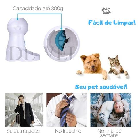 - Alimentação Regular: você pode programar a quantidade de alimento adequada para o seu pet.