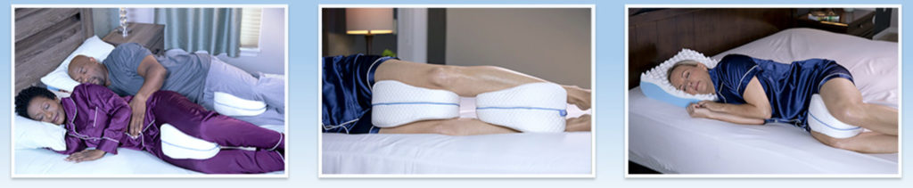 Almofada Ortopédica para Pernas e Joelhos é uma ALMOFADA DE ALINHAMENTO que proporciona  CONFORTO LATERAL um CONFORTO para alinhar adequadamente a COLUNA e estabilizar os quadris e amortecer os joelhos enquanto dorme para aliviar a dor nas costas, quadris, pernas, e joelhos.