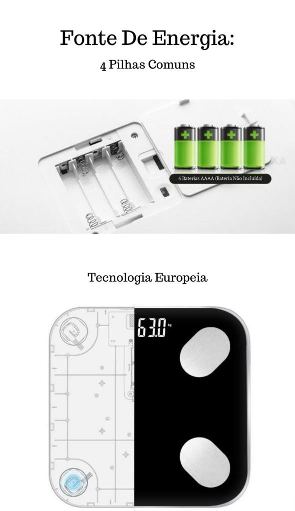 - Fonte de alimentação: 4 Pilhas AAA