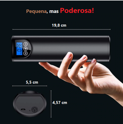 Bomba de Ar Portátil Elétrica – Pneu Carro, Moto, Bicicleta – Sem Fio – Recarregável 2 em 1