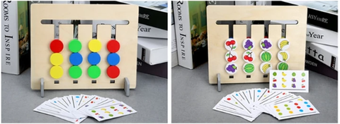 ✔️ é dupla face, um lado corresponde à cor e o outro lado é o emparelhamento de frutas.