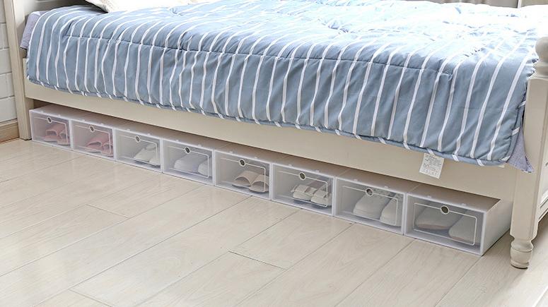 Nossas caixas de arrumação de sapatos têm portas dianteiras para que você possa acessar facilmente seus sapatos mesmo quando as unidades estão empilhadas ou em uma prateleira alta. A frente e os lados claros permitem que você veja o que está dentro de relance.