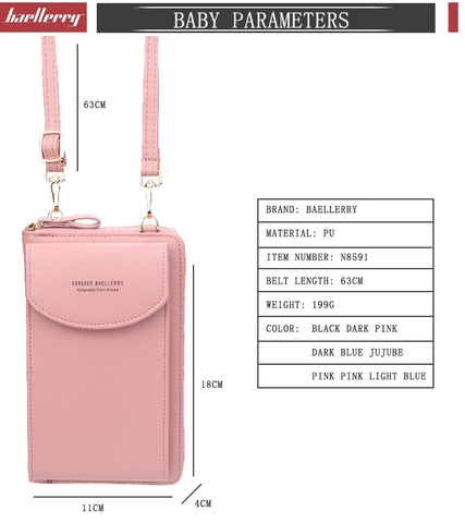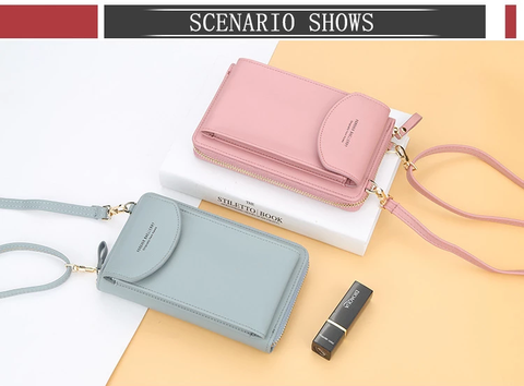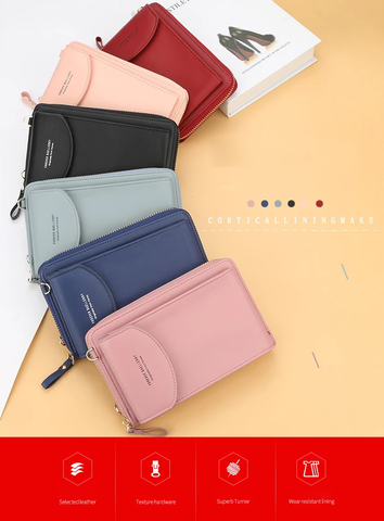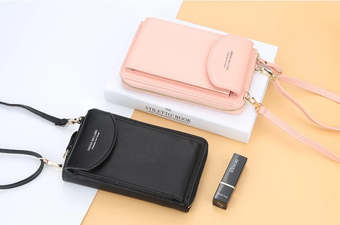 Projetada para armazenar telefones celulares, dinheiro, cartões e outras pequenas coisas. Você pode simplesmente segurá-la na mão ou colocá-la na bolsa