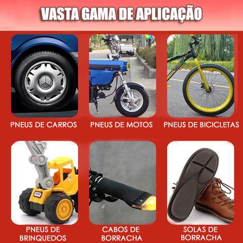 Vasta gama de aplicação – Pode ser aplicada a diferentes tipos de pneus e outros tipos de material. Seguro e fácil de usar, essa Cola Reparadora De Borracha é produzida com uma substância atóxica, não perigosa e não inflamável.
