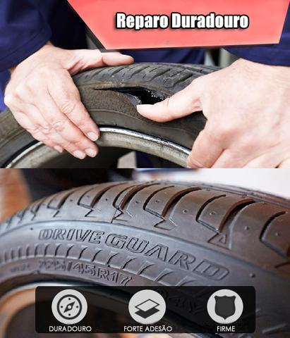 Reparo rápido e eficaz – funciona bem em qualquer tipo de pneu com forte adesão.