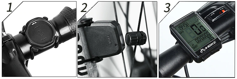 Como instalar um computador de bicicleta sem fio 1, o computador é fixado no guidão com cintos 2, ímã é fixado sobre o raio. Lançador é fixo com cintos. 3, inserir o computador para a base