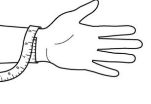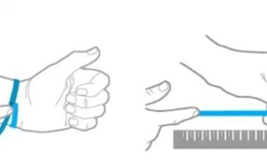 Enrole a fita métrica ao redor do seu pulso conforme a foto e anote  a numeração em centímetros.