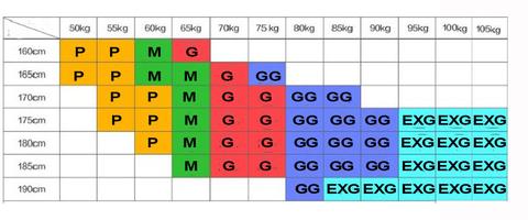 Antes de realizar a compra, faça a escolha da medida de acordo com a tabela abaixo: