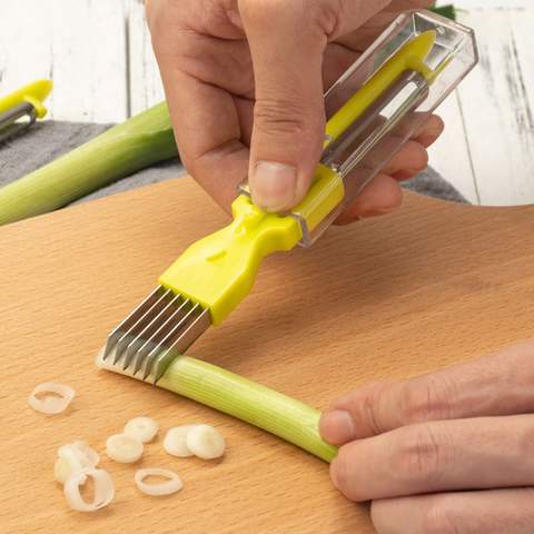 Este não é apenas um cortador de cebolinha! Também pode ser usado para peeling rápido. Ele economiza o custo de uma faca de aparar separada enquanto economiza espaço na cozinha. É uma boa escolha para todas as donas de casa!