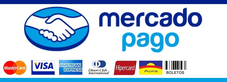 Processo de pagamento totalmente seguro, por boleto bancário ou cartão de crédito, através do Mercado Pago ou PayPal.