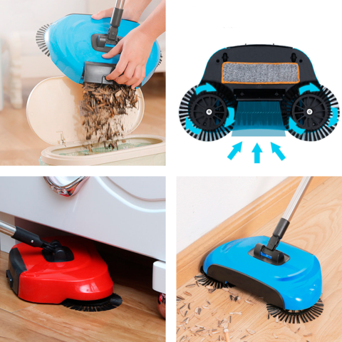 Funciona de forma automática, sem eletricidade ou baterias, basta empurrá-la para a frente e coleta a poeira.