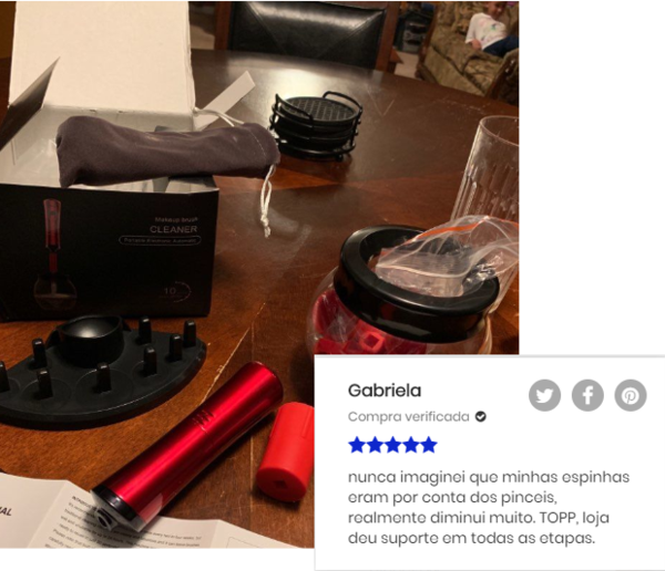 O Ciclo avançado de lavagem e secagem removem restos maquiagem e bactérias dos pincéis de forma eficiente deixando-os sem resíduos de cosméticos, basta você colocar o produto de limpeza que você utiliza para lavar seus pincéis no recipiente e pronto!