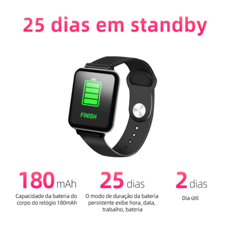 • Duração da bateria: 25 dias em standby ou 7 dias em trabalho.