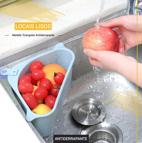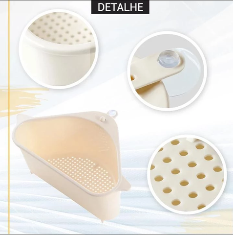 Com design triangular, pode ser acoplado no canto da pia, ocupando pouquíssimo espaço. Graças à sua base vazada, o escorredor pode drenar a água rapidamente para que você possa lavar vegetais e frutas, evitando que os alimentos bloqueiem a drenagem.