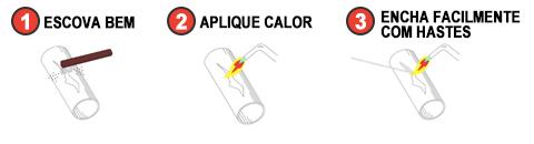 Cuidado: nunca aplique calor diretamente na haste, pois ela se desfaz e, se você conseguir derreter a haste diretamente, a solda será facilmente quebrável. Lembre-se, derreter a haste diretamente é uma maneira errada e faz soldas amassadas.