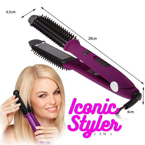 ♥️Iconic Styler é 2 em 1, como escova modeladora ou uma prancha de cerâmica de turmalina profissional!
