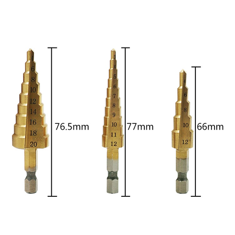 Este conjunto de brocas inclui 3 tamanhos (4-12mm, 4-20mm, 4-32mm), que atendem às suas diferentes necessidades perfeitamente.