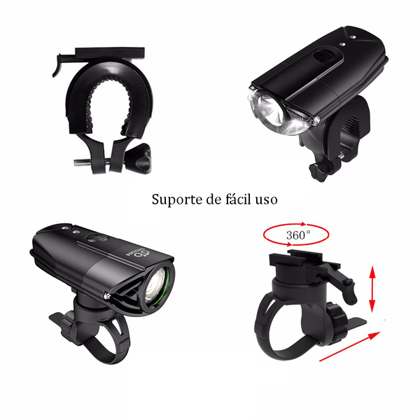 Luz de LED 1200 LUMENS perfeita para seus pedais, de fácil fixação, recarregamento via USB. Bateria de 2000mAh que te proporciona até 12 horas com iluminação em sua jornada até nos pedais mais longos.