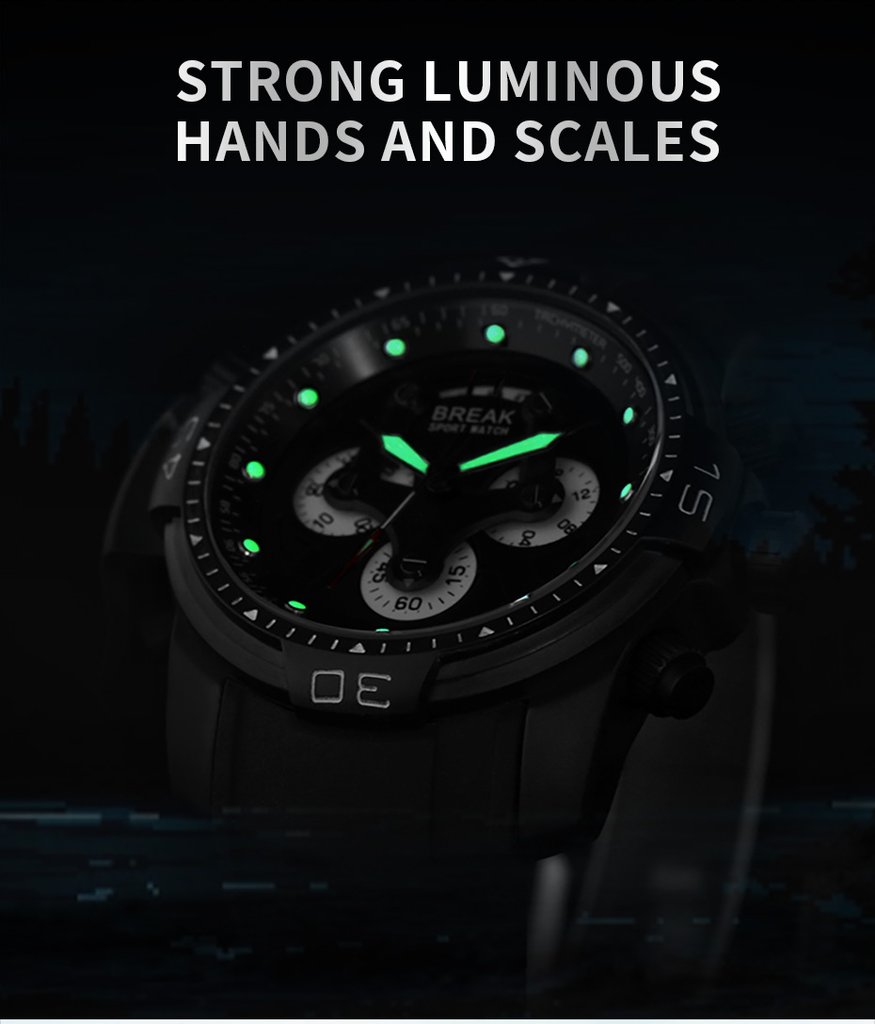 Característica: À Prova D’Água, Calendário Completo, Cronógrafo, Ponteiros Luminosos