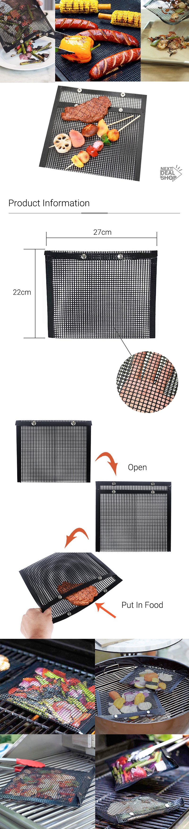 Este bolso de malha para grelhar antiaderente incrivelmente versátil é um must-have para seu churrasco! O tecido não tóxico e fácil de limpar o torna ótimo para grelhar. Coloque carne ou legumes dentro para grelhar facilmente de maneira uniforme e sem esforço.