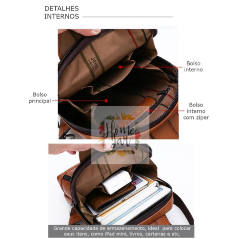 Combine estilo e elegância com a Mochila Transversal Jeep Couro Italiano, super prática e espaçosa.