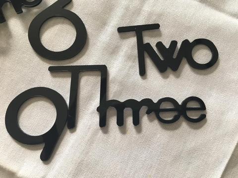 Letras são cortadas a laser e o material é de acrílico com espessura de 1mm.