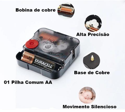 A Máquina funciona com 01 Pilha comum, contém bobina e base em cobre de alta qualidade, uma engrenagem de alta precisão de movimento continuo, não faz barulho TIC-TAC, totalmente silencioso.