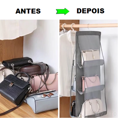 Desenvolvido com um design único, permite que você guarde 6 bolsas de maneira eficiente ocupando pouco espaço em seu guarda roupas ou closet.