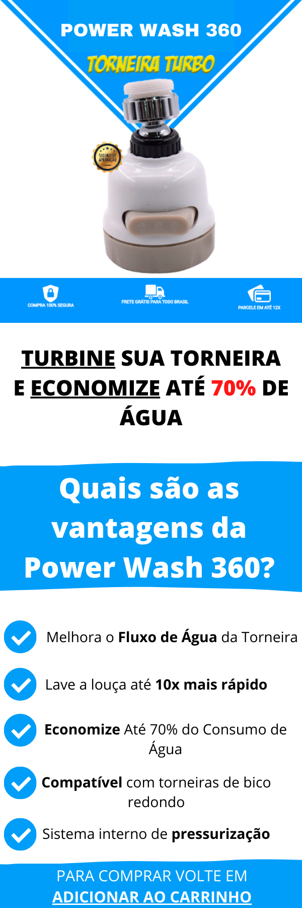 Com o adaptador Power Wash 360 você economiza muita água, ajudando o planeta e seu bolso!