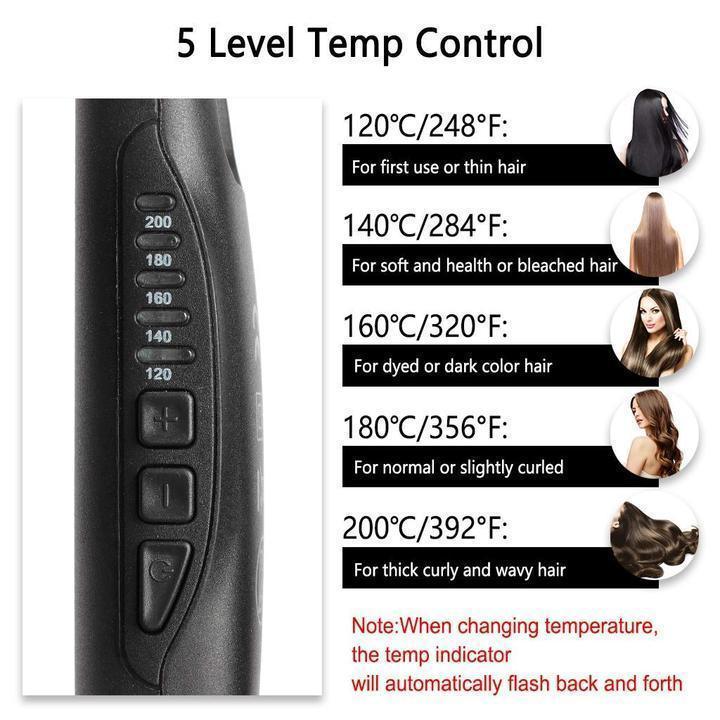 - 5 design de controle de temperatura ajustável (248 ° F-392 ° F) para diferentes penteados.