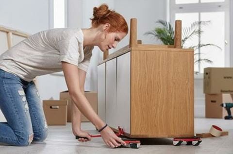 Basta levantar a mobília com o levantar de moveis, encaixar as mini plataformas com rodinhas e empurrar pela casa.