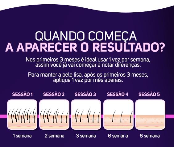 Recomendamos que você use o aparelho uma vez por semana nas primeiras 12 semanas. Após esse período, use o seu aparelho uma vez por mês, por 3 meses ou até estar satisfeito com o resultado. Para manter a pele lisa e sem pelos, use o aparelho uma vez a cada 2 a 3 meses ou conforme necessário.