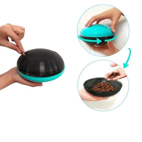 Com formato de nave espacial, é apropriado para qualquer tamanho de cachorro. O objetivo é carregar/buscar o brinquedo, ensinar que ao apertar, ouvirá um som divertido e curioso para o pet e, para conseguir as gostosuras, deve apertar várias vezes.