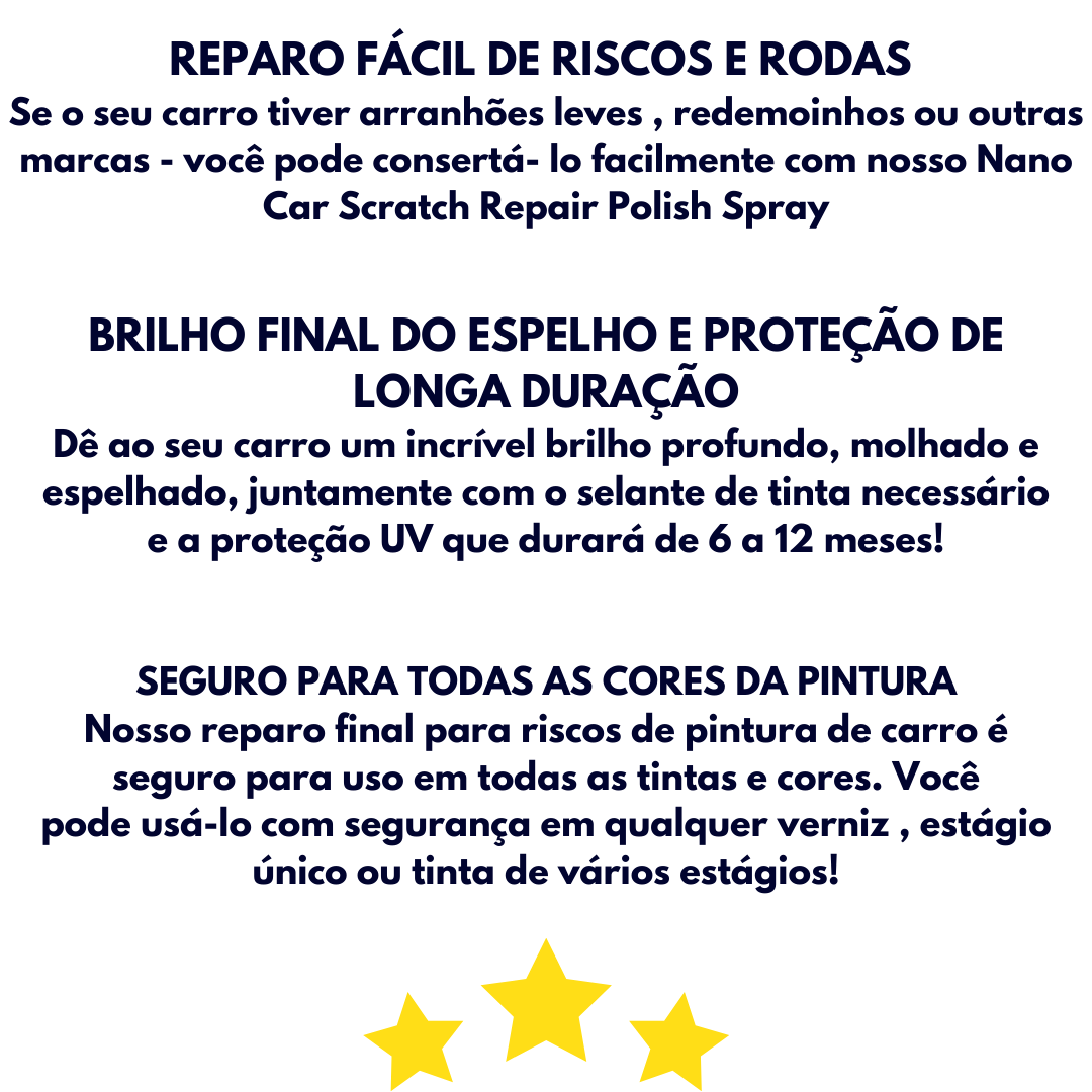 OBSERVAÇÃO IMPORTANTE: O SPRAY NANO REPAIR SERVE PARA QUALQUER COR DE CARRO!