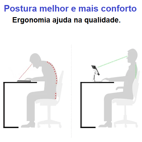 Ajuste multi-ângulo (alivia a fadiga dos ombros e do pescoço, além de deixar as mãos livres).