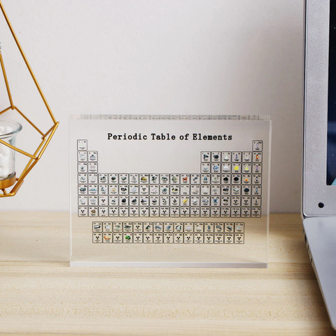 Nossa tabela periódica acrílica foi cuidadosamente trabalhada e os elementos podem ser vistos dentro do acrílico para mostrar a singularidade e o estilo da peça.