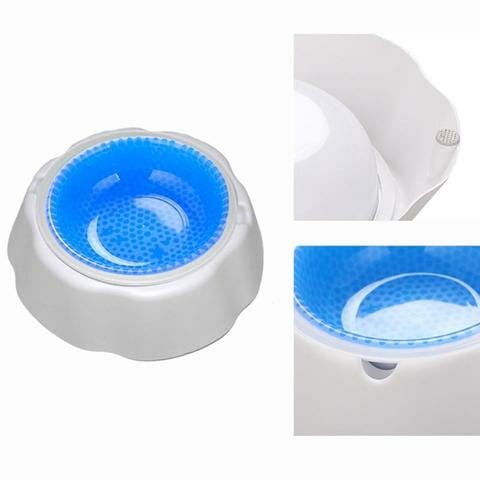 O núcleo da tigela é feito de gel, basta remover a tigela da base e colocar no congelador por 2 horas para que o gel congele e mantenha tudo fresquinho para o seu pet!